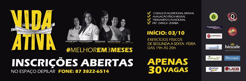 No próximo mês iniciara um projeto inédito em Arcoverde o Vida Ativa, idealizado pela nutricionista Evelyze Figueredo o programa tem a finalidade de melhorar a saúde dos participantes dentro de 3 meses.