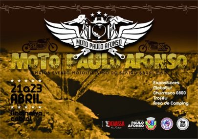 Moto Paulo Afonso – 2017 Datas: 21, 22 e 23 de Abril de 2017 Local: Centro Lindinalva Cabral Cidade: Paulo Afonso Estado: Bahia Organizador: AMO PAF com apoio da prefeitura de Paulo Afonso