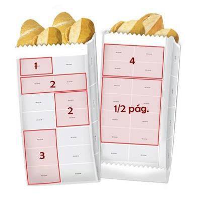 São 30 mil sacolas, distribuídas em mais de 25 padarias que recebem as sacolas de papel sem custo,pois o custo é dividido entre todos os 32 patrocinadores.